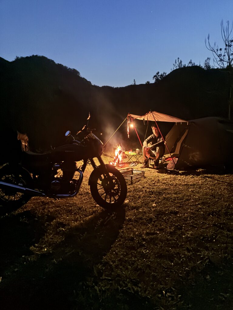 乗ってお越しくださいました。バイクでのキャンプは
